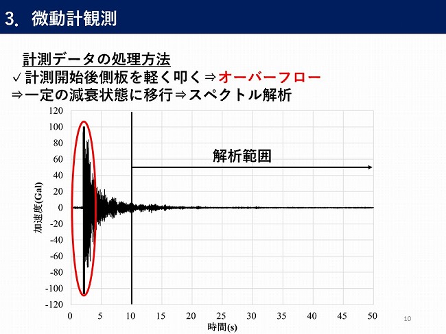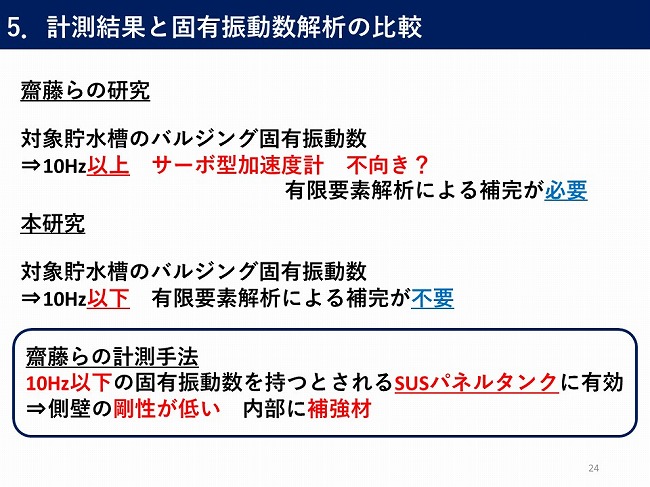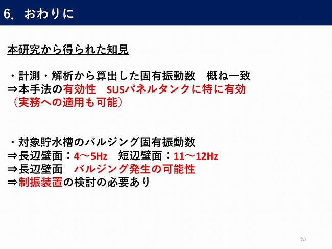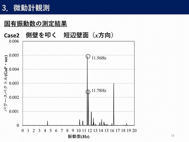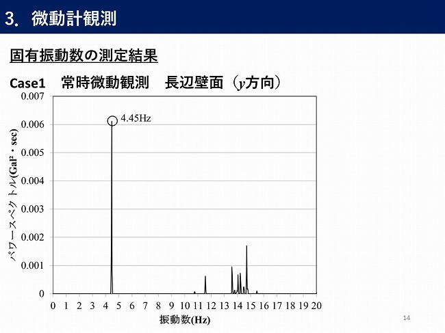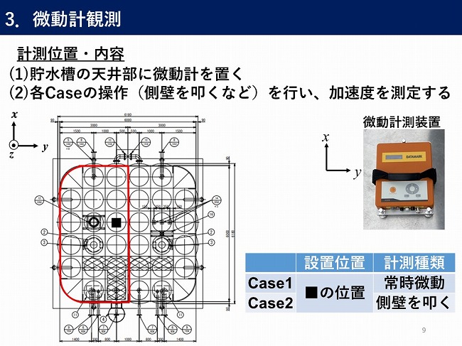 - 微動計測装置を用いた現地計測での貯水槽のバルジング固有振動数の推定