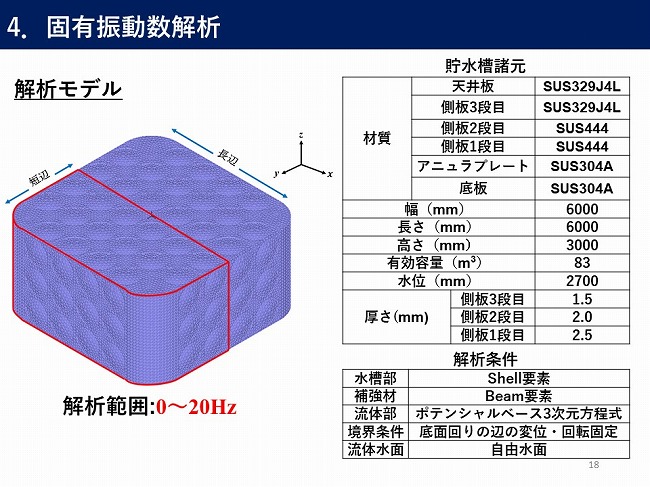 - ステンレス製パネルタンクの流体と構造を連成しての固有値解析と時刻歴応答解析