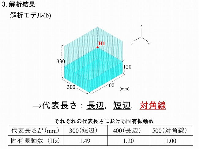 - 矩形断面容器における代表長さを変化させた場合のスロッシング特性の把握