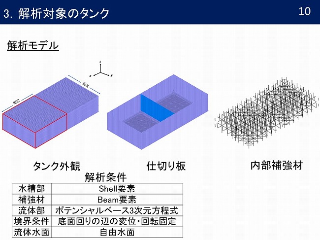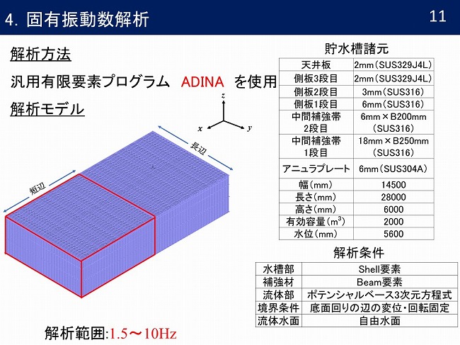- ステンレス製パネルタンクの流体と構造を連成しての固有値解析と時刻歴応答解析
