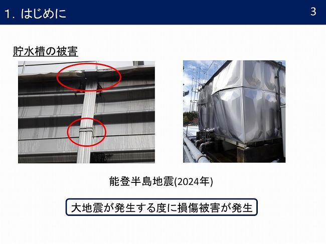 - 最近発生した地震による貯水槽被害の特徴に関して