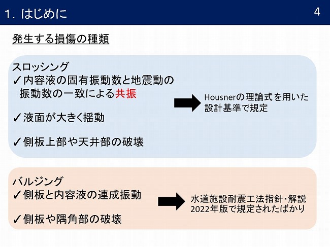 - スロッシング現象によるステンレスパネルタンクの損傷被害に関して