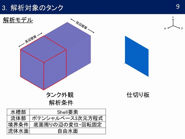 - ステンレス製パネルタンクの流体と構造を連成しての固有値解析と時刻歴応答解析