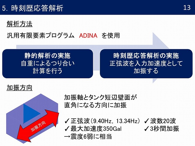 - 矩形断面容器におけるスロッシング発生時の時刻歴応答解析